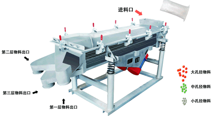 大豆皮直线筛运转起来时,是靠两台对称安装的振动电机的反向旋转,产生指向前上方的合力,使大豆皮在筛面上呈直线轨迹跳跃前进。配合多层筛网,可一次性将混合料分成不同规格。针对大豆皮密度低、易漂浮的特点,激振力需精确调整,既让皮屑跃起,又在下落时清除网孔嵌入物,可以解决轻质物料易糊网的问题。下面是直线筛工作原理视频。