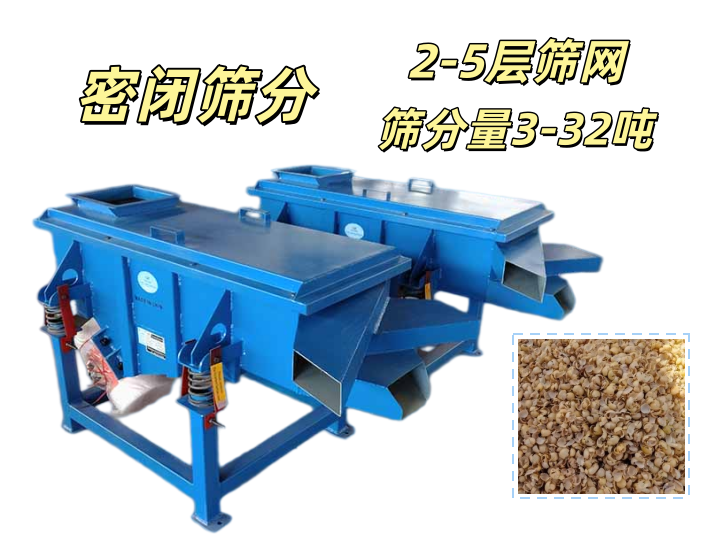大豆皮直线筛有密封性好的优点,大豆皮干燥后极易起尘,这种产品采用了加厚的密封胶条与压紧框架,让粉尘在机壳内部不会逸散。机器支持2-5层多层筛面叠加,出料口可以顺着生产线方向一字排开,实现粗皮、细皮和微粉的同步分级。对于那些产量要求极大的加工厂,加宽的筛面能承载更厚的料层而不影响透网率。考虑到有些大豆皮带有静电或者水分略高,筛网的编织方式和材质也能定制,比如加装弹跳球清网装置,利用小球撞击网面的反弹力,把粘在网眼上的皮屑震落下来。